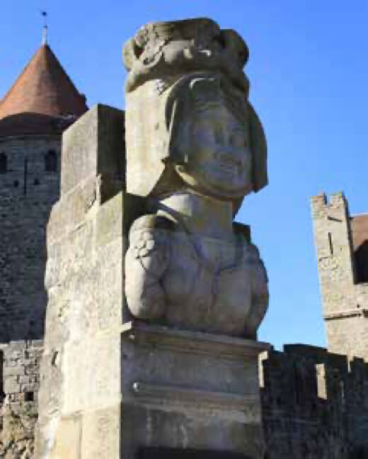 L’entrée de la Cité est protégée par un fossé ou douve sèche. Il est creusé devant une partie de l’enceinte ext rieure et constitue un obstacle en creux contre, entre autres, les tours de siège des assaillants. Devant le pont-levis se trouve la statue de Dame Carcas, héroïne légendaire de la Cité dont l’original est conservé dans le château comtal.